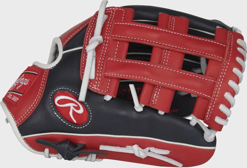 In addition, all our new Breakout series gloves offer exceptional comfort and feel – thanks to their padded finger-back linings, thermoformed wrist strap, and padded thumb sleeve. They even have reinforced palm pads for greater protection as well! This particular Breakout youth outfield glove was constructed with a youth pro taper fit pattern, which offers a smaller hand opening to provide a better fit and more glove control for players with smaller hands. Its Pro H-web is a top choice of many of the game’s premiere outfielders too. Lastly, the stylish red, white, and blue design is sure to make you the most talked about player on your team.